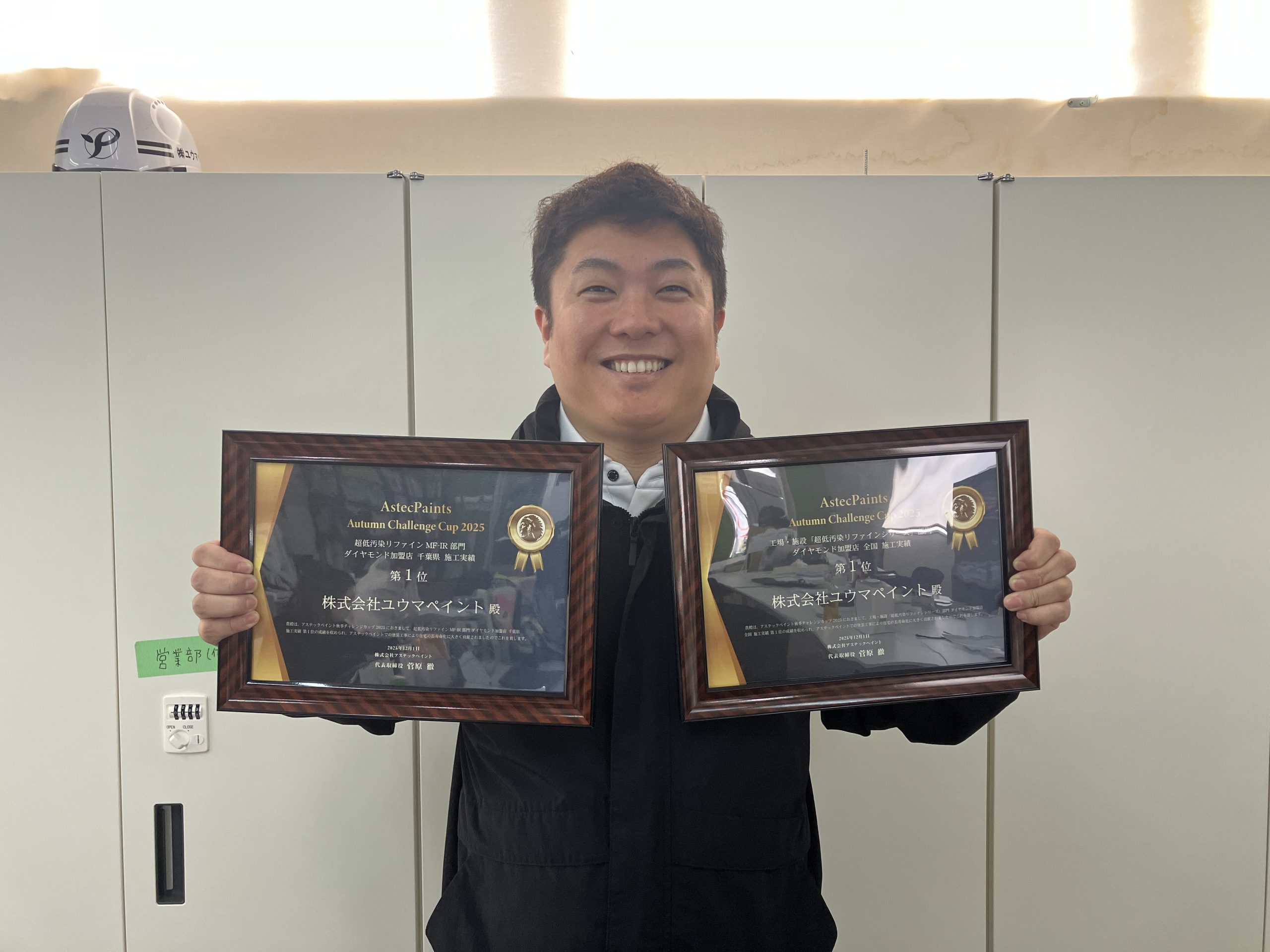 本日は、皆様に大変嬉しいご報告がございます。 この度、塗料メーカーアステックペイント様が主催する『2025年秋季チャレンジカップ』において、2つ受賞いたしました!