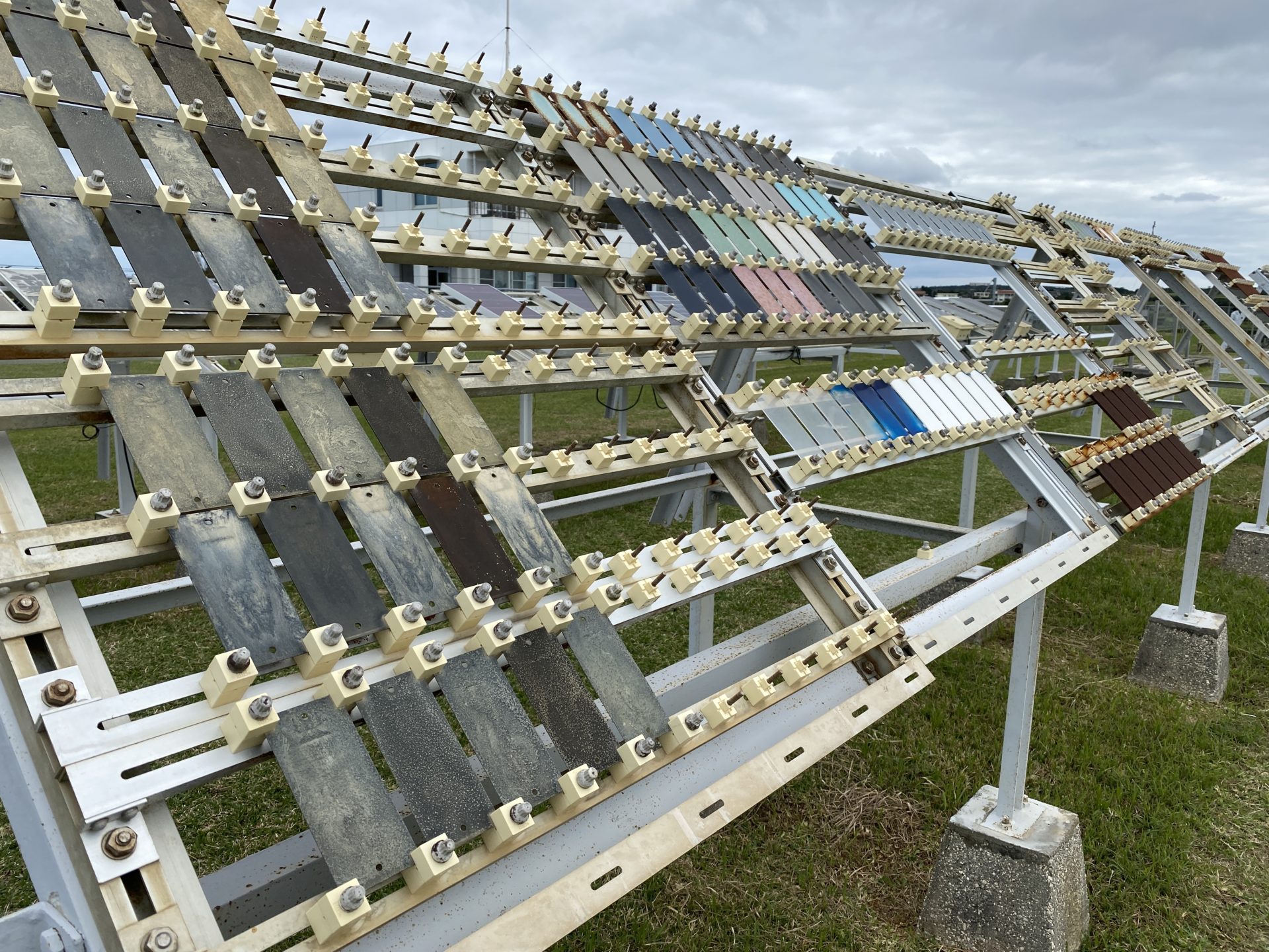 日本ウェザリングテストセンターで塗料の曝露試験を行う様子 |