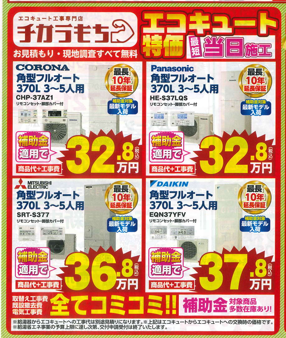エコキュートもチカラもち特価でご提供!