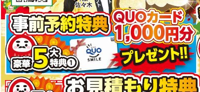 【事前予約特典】 事前にご予約の上ご来場いただいた方に、QUOカード1,000円分をプレゼント!