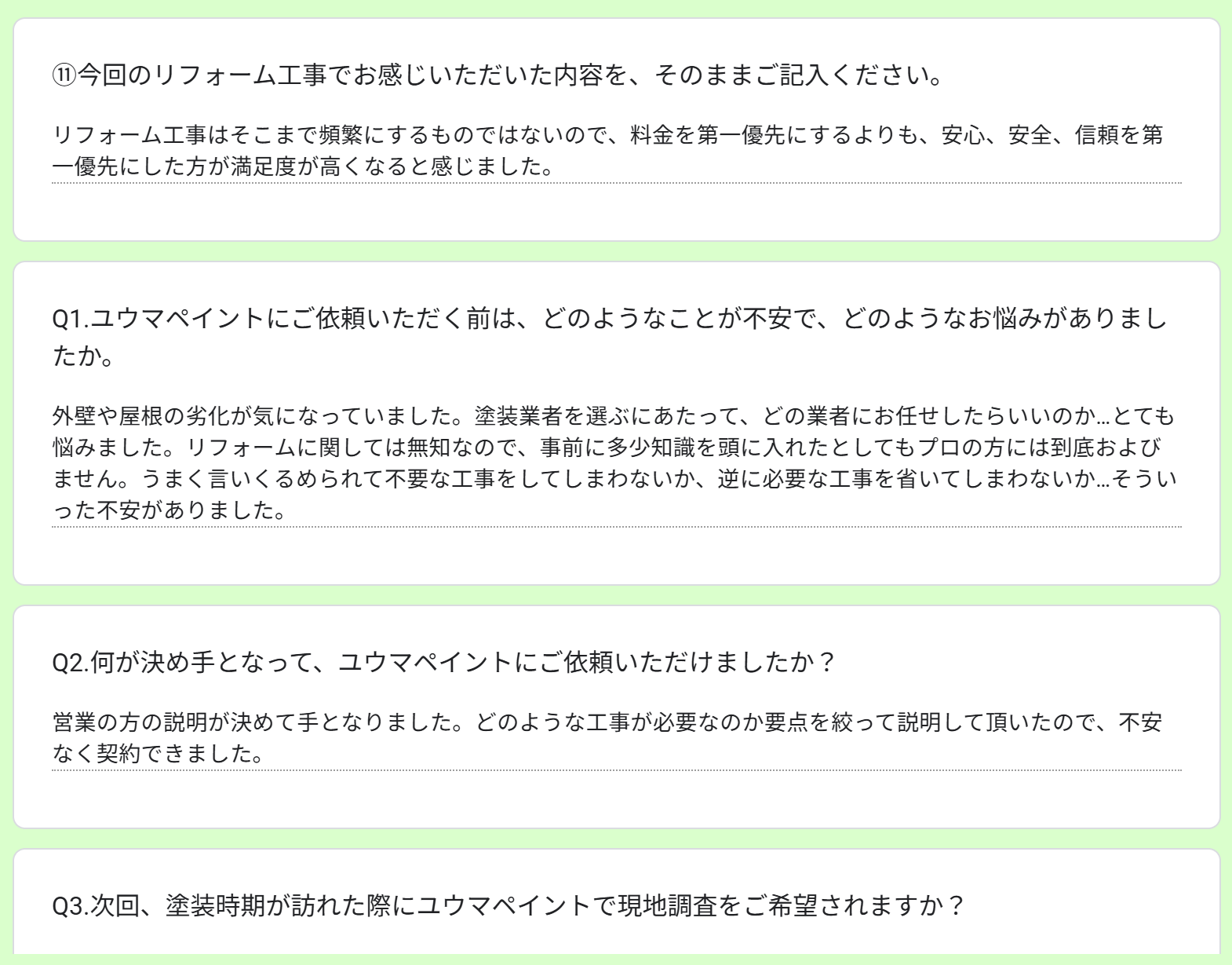 何が決め手となって、ユウマペイントにご依頼いただけましたか?